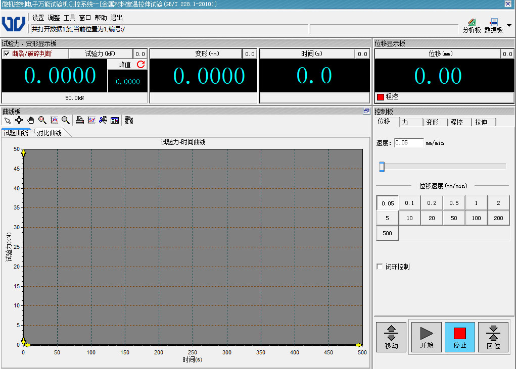 (5)支持多種控制方式,包括開環(huán)等速位移及等速力、等速應(yīng)力等多種閉環(huán)控制方式;并在高級操作者調(diào)試閉環(huán)參數(shù)過程中給出標(biāo)準(zhǔn)參考曲線,從而使用戶實(shí)際觀察到各參數(shù)對閉環(huán)效果產(chǎn)生的影響。