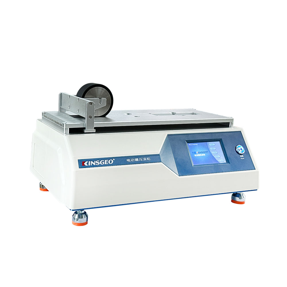 電動碾壓滾輪用于膠粘帶剝離強度、持粘性等試驗用試件的制備。以固定的壓力及速度,將膠粘帶試樣規(guī)范平整,均勻的粘著于標準的試驗基材上。