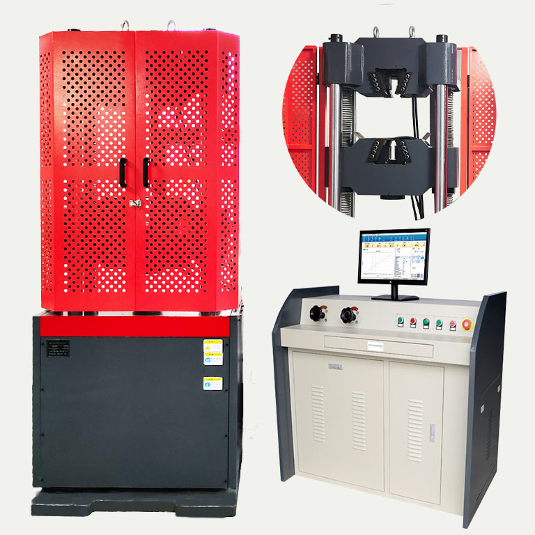 主機為兩立柱、兩絲杠、油缸下置式,拉伸空間位于主機的上方,壓縮、彎曲試驗空間位于主機下橫梁和工作臺之間。數據測控系統采用高精度A/D轉換器,分別對力、位移、變形進行數據采集,具有測量精度高,可靠性好等特點,滿足GB、ISO、ASTM等標準對于金屬拉伸、壓縮、彎曲、剪切等試驗要求。