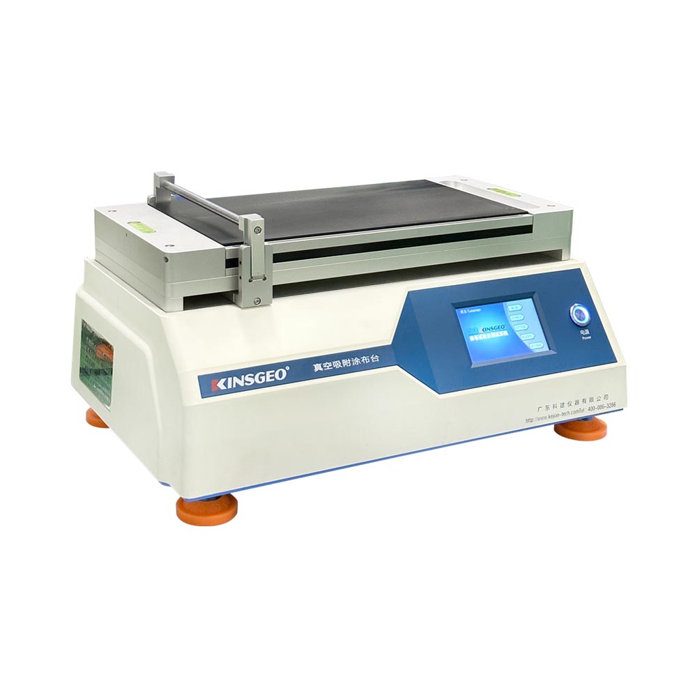 KJ-6017B小型真空吸附涂布機用于制備均一可溯的涂膜(手工涂膜經常不協調,特別是不同操作人員之間,這就使得試樣的比較很困難,甚至是不可靠),其重現性好。因為影響涂膜的因素是剪切速率和加在施工工具上的重量。該儀器使用一個精確控制的線棒或涂膜器,以選定的速度來回移動。由于試紙平整地被吸附在吸盤上且涂膜時剪切速率和加在施工工具上的重量保持不變,從而大大提高了涂膜的重現性。